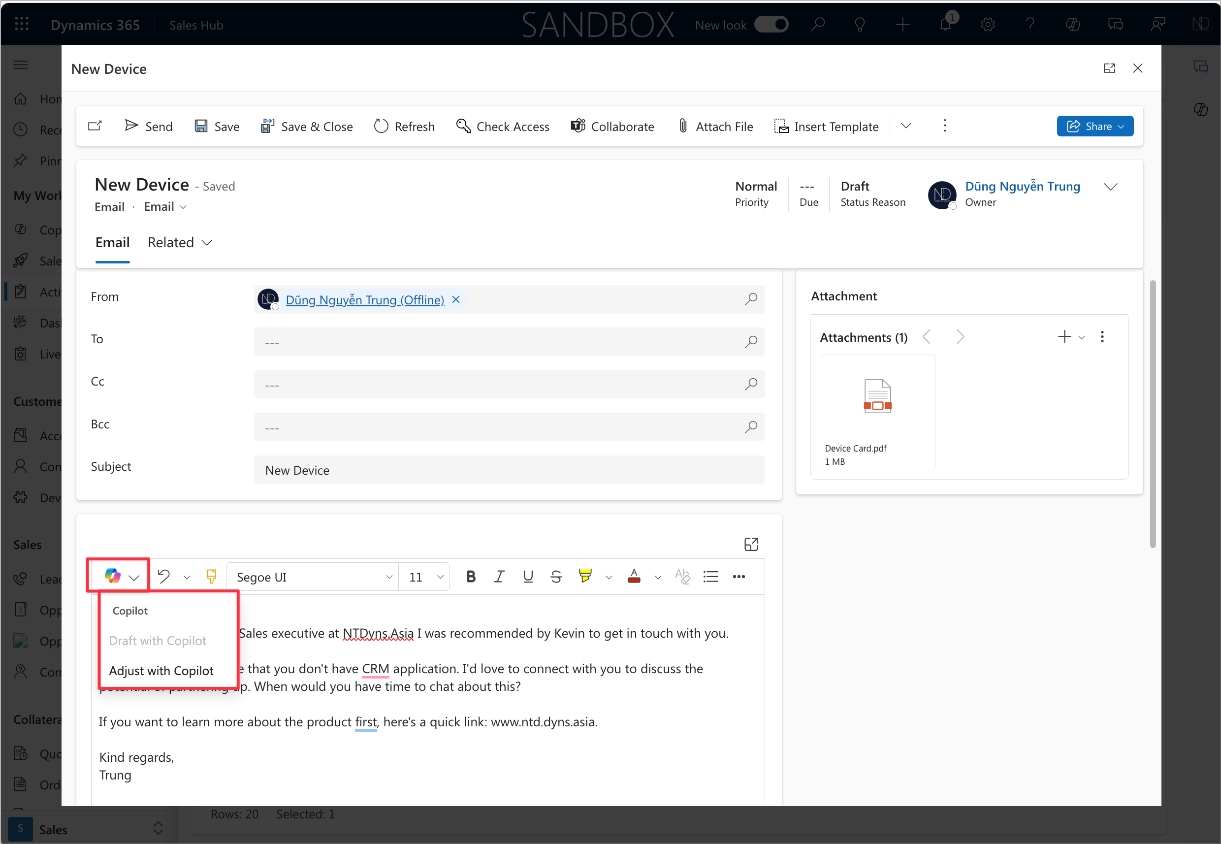 Subsequently, I discovered that **this Copilot functionality** can be **integrated** with the **Rich Text Editor control** for **any desired entity**, enhancing its functionality.