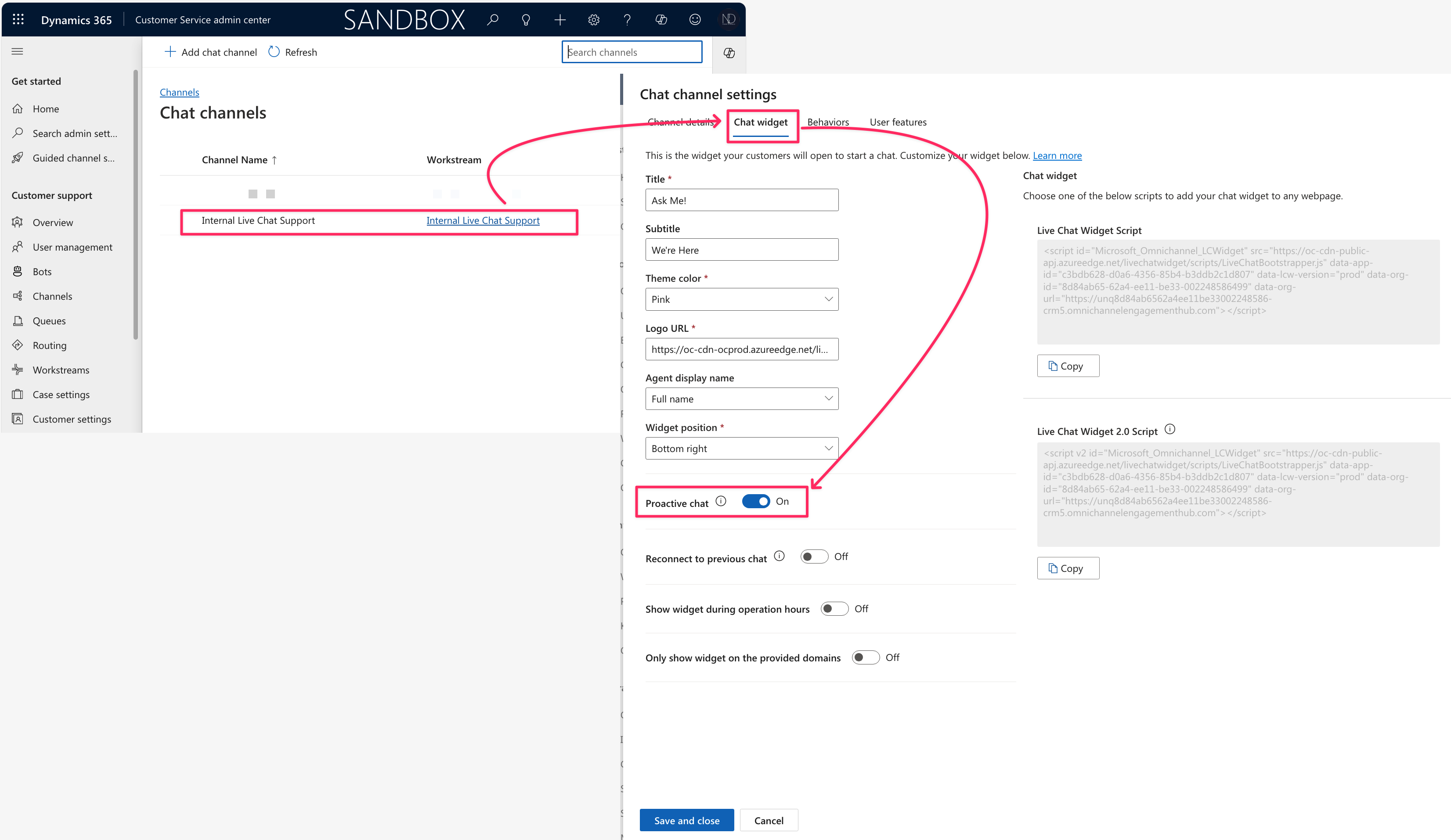 ### 1. Enable the Proactive Chat feature for "Chat" channel