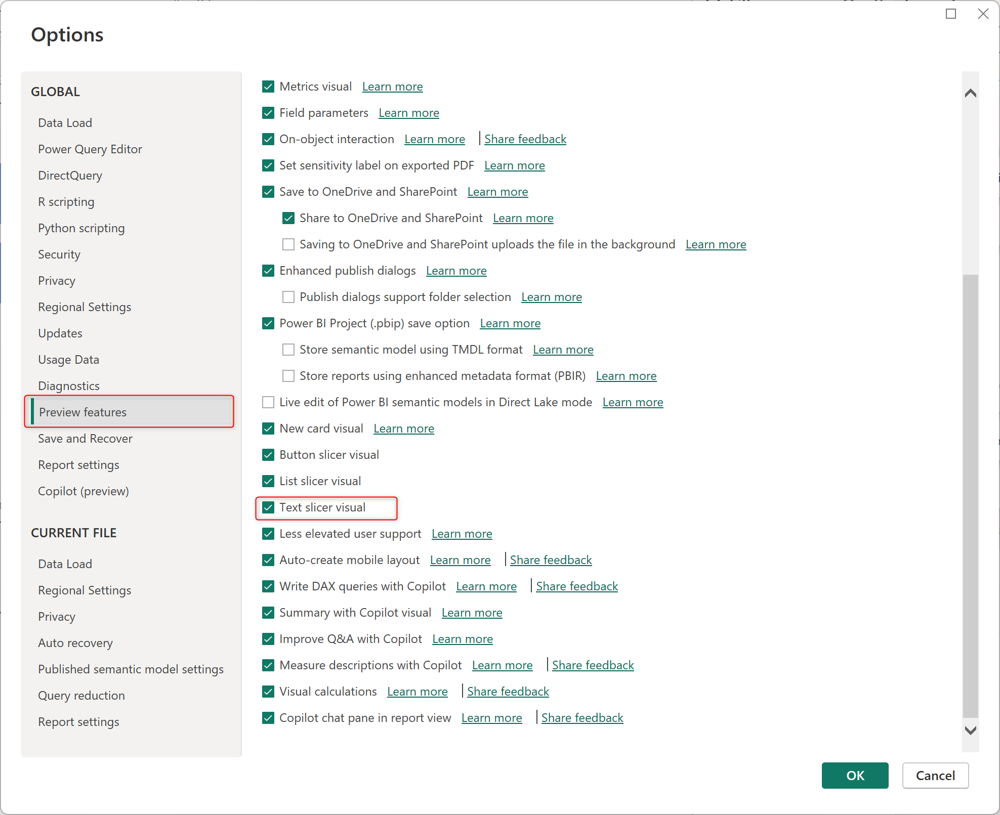 In the Power BI desktop, access the Options setting > then select Preview features, and enable the Text slicer visual by ticking the check box. OK and try.