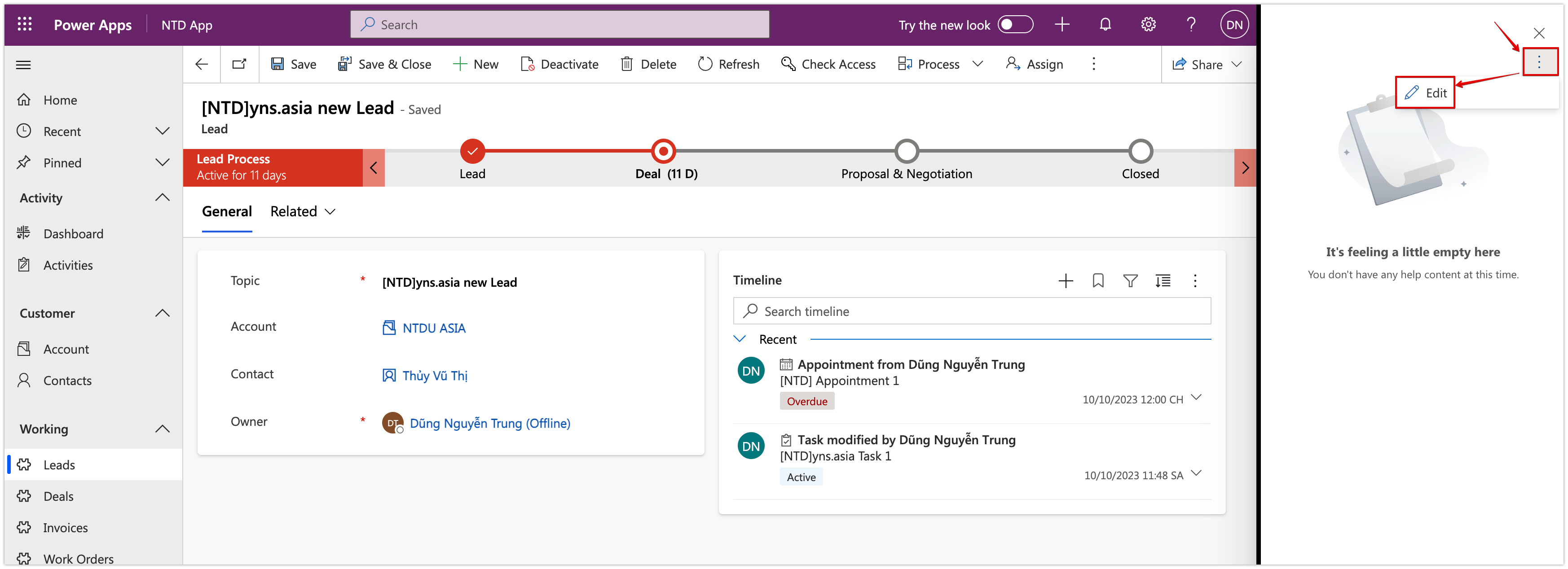 After that, on the Custom Help Pane >> click on the icon <...> and then click **Edit**