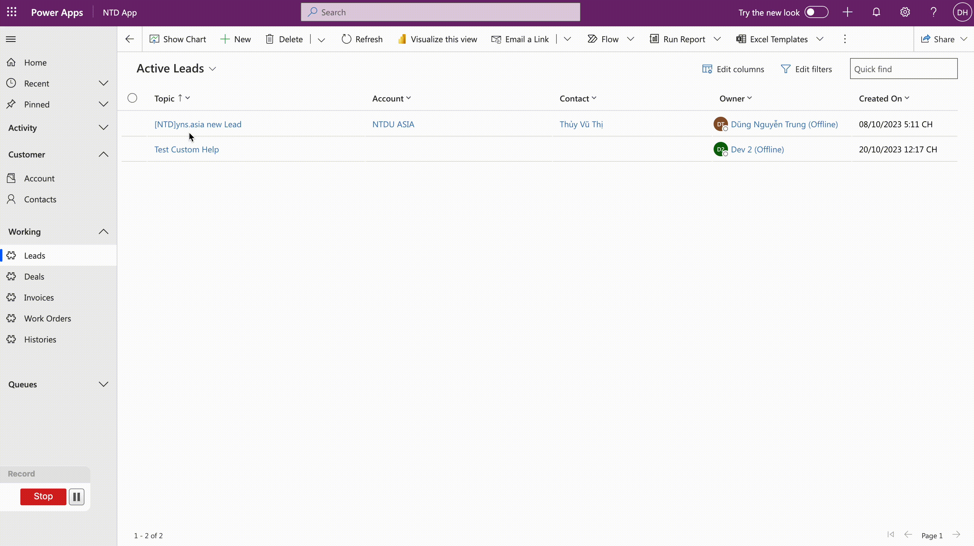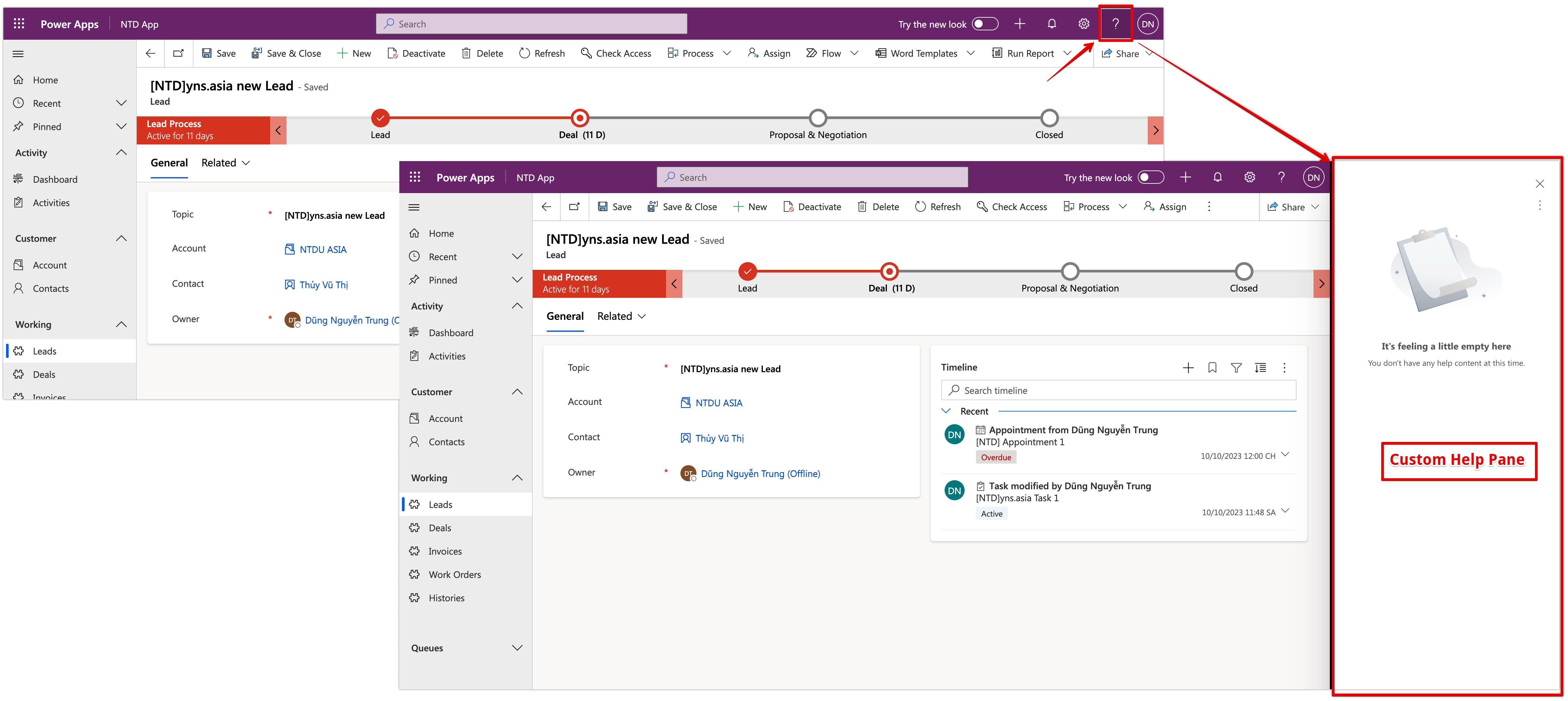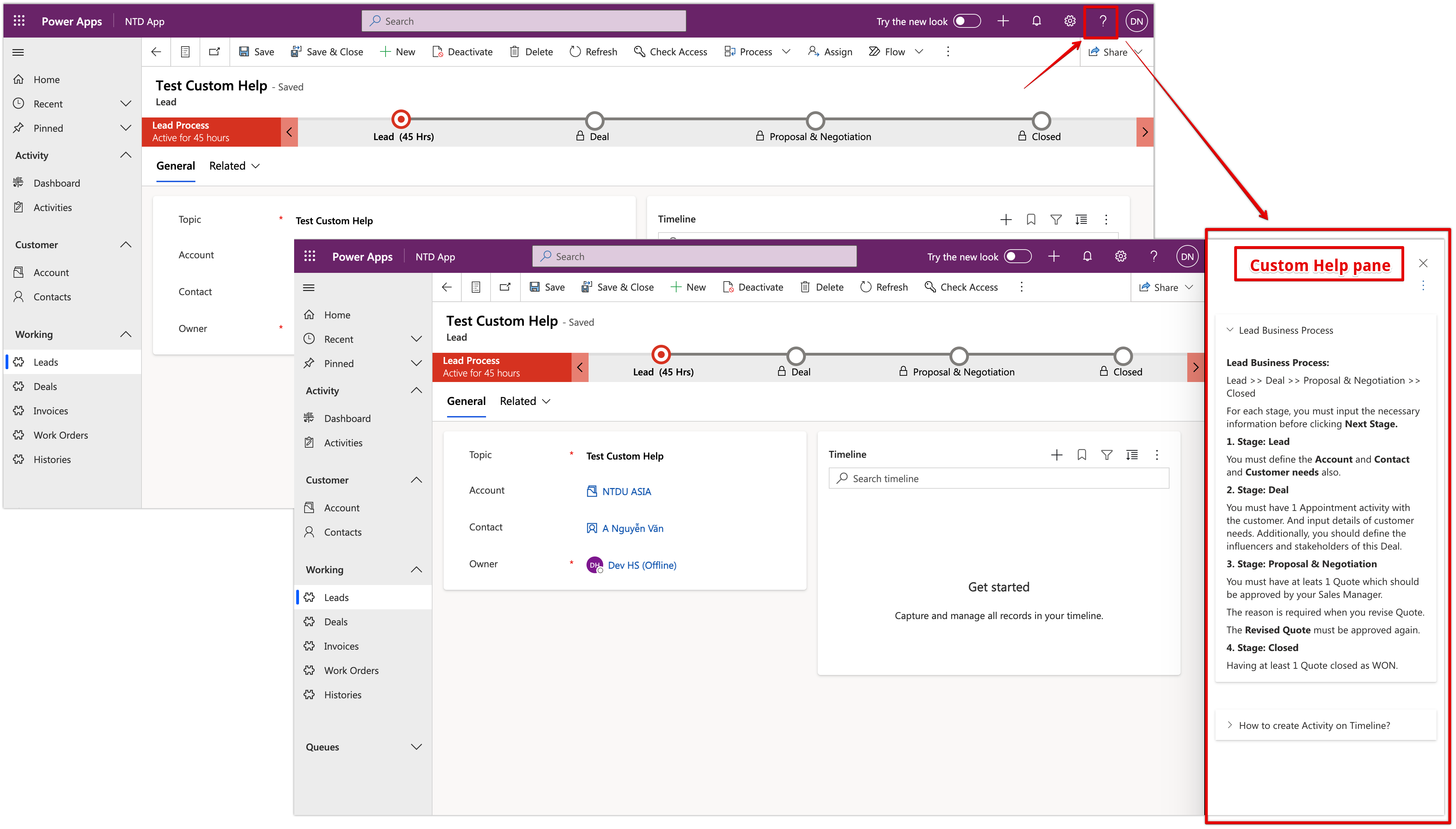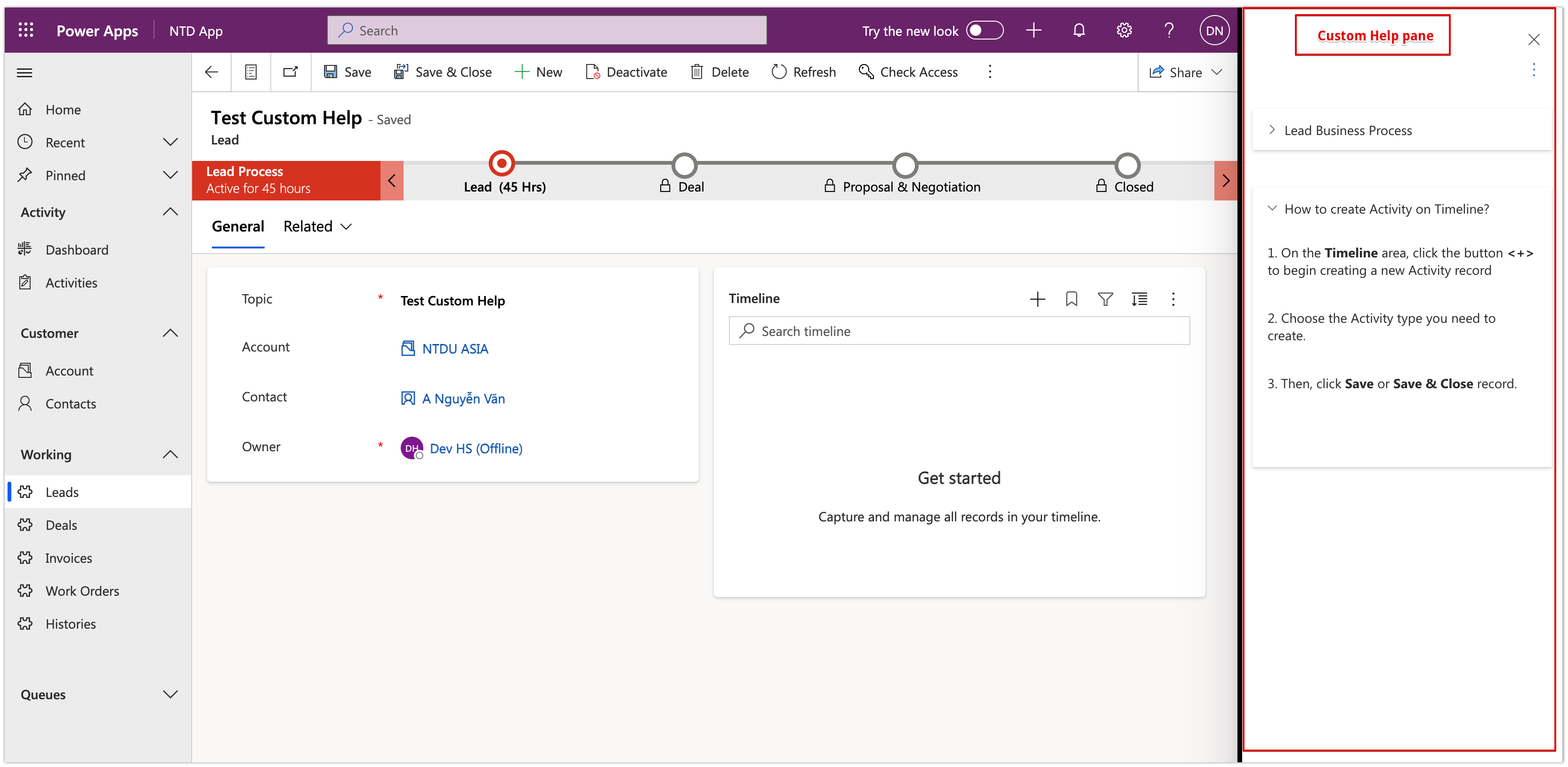 Now, I will log in with a different user will open the Lead form then use the custom help.