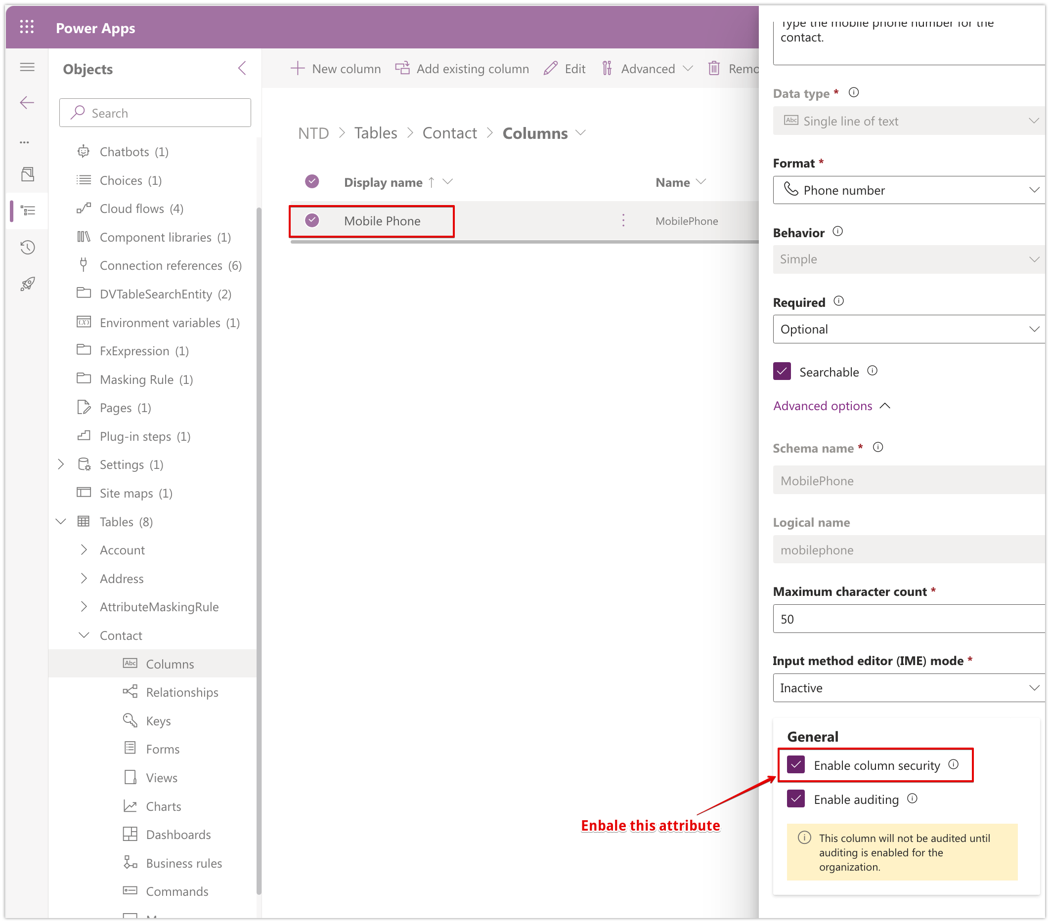My case is the "**Mobiphone**" column of the **Contact** entity